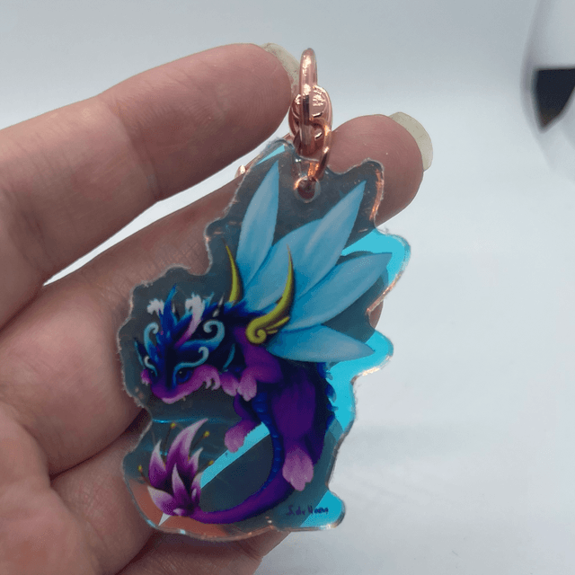 Elfdraakje met bloem elementen. Hoogte is 5cm en de breedte is 3,4cm